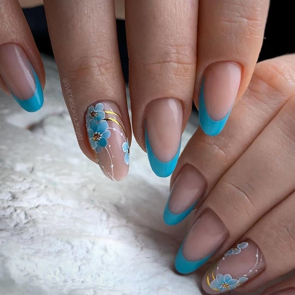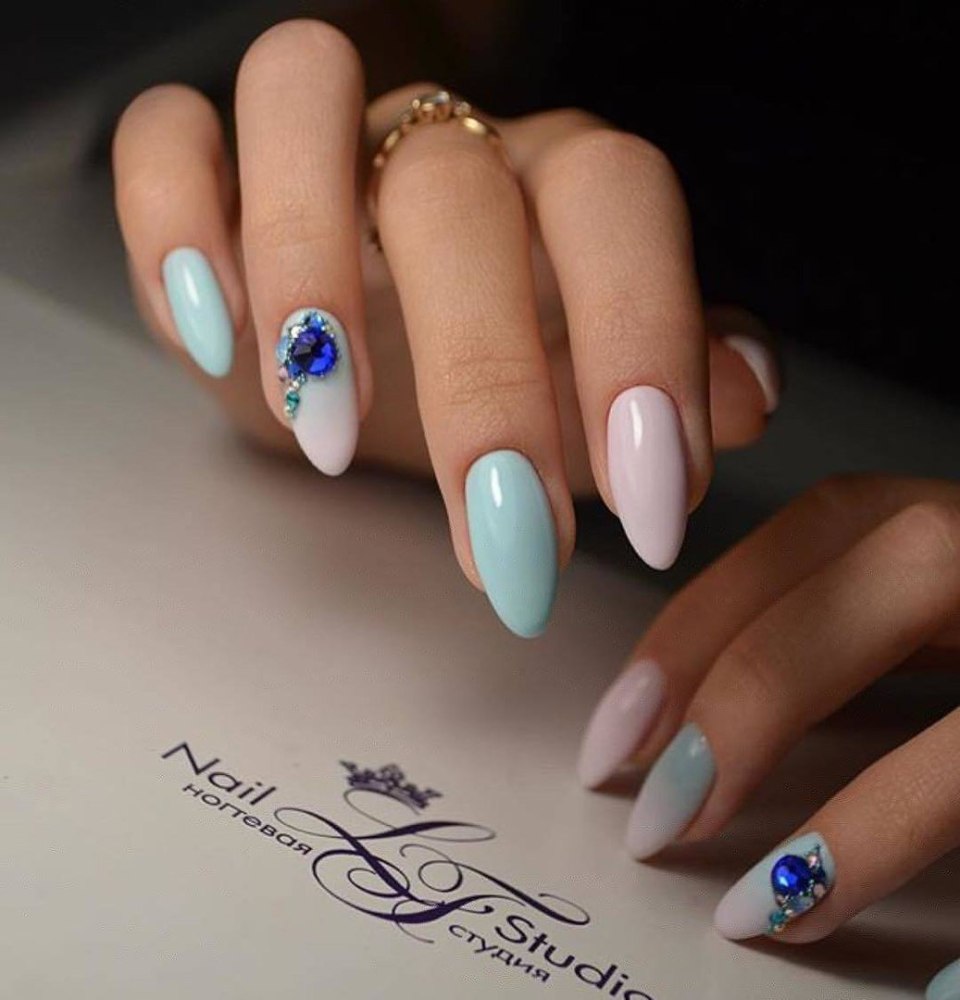 Маникюр в голубых оттенках на миндалевидные ногти (70 фото)