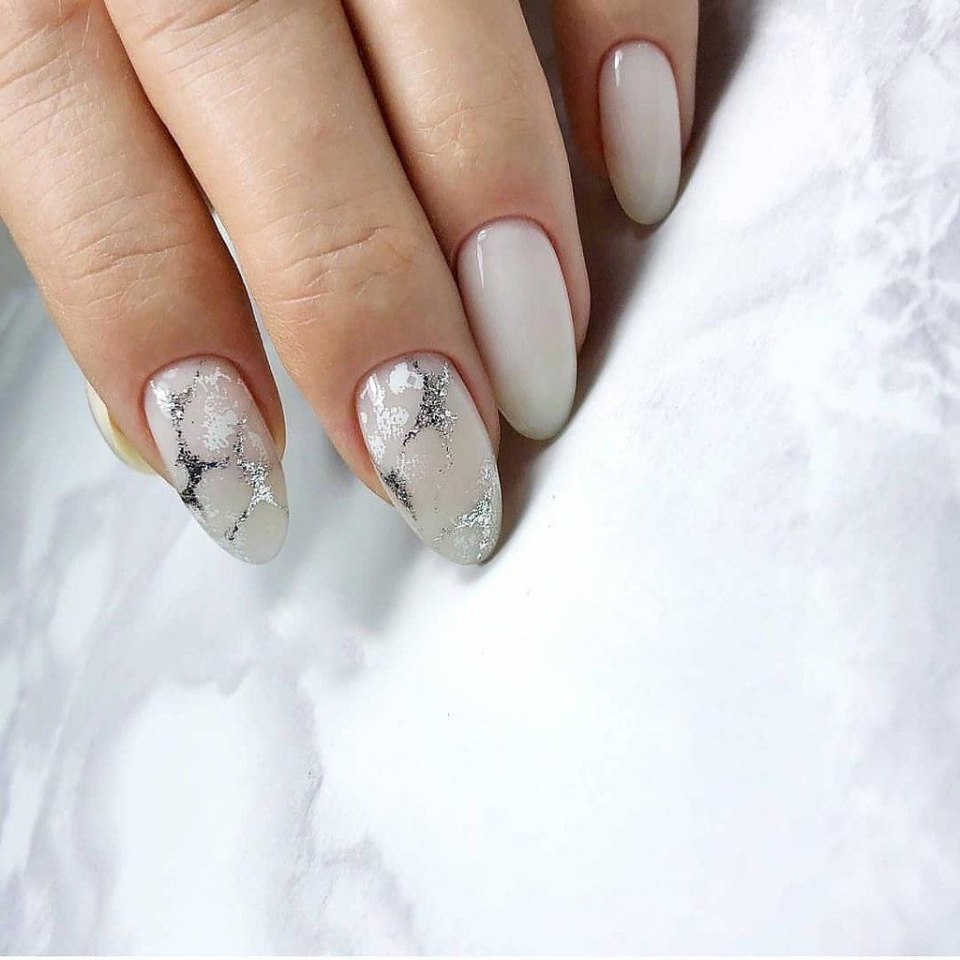 Молочный мраморный маникюр