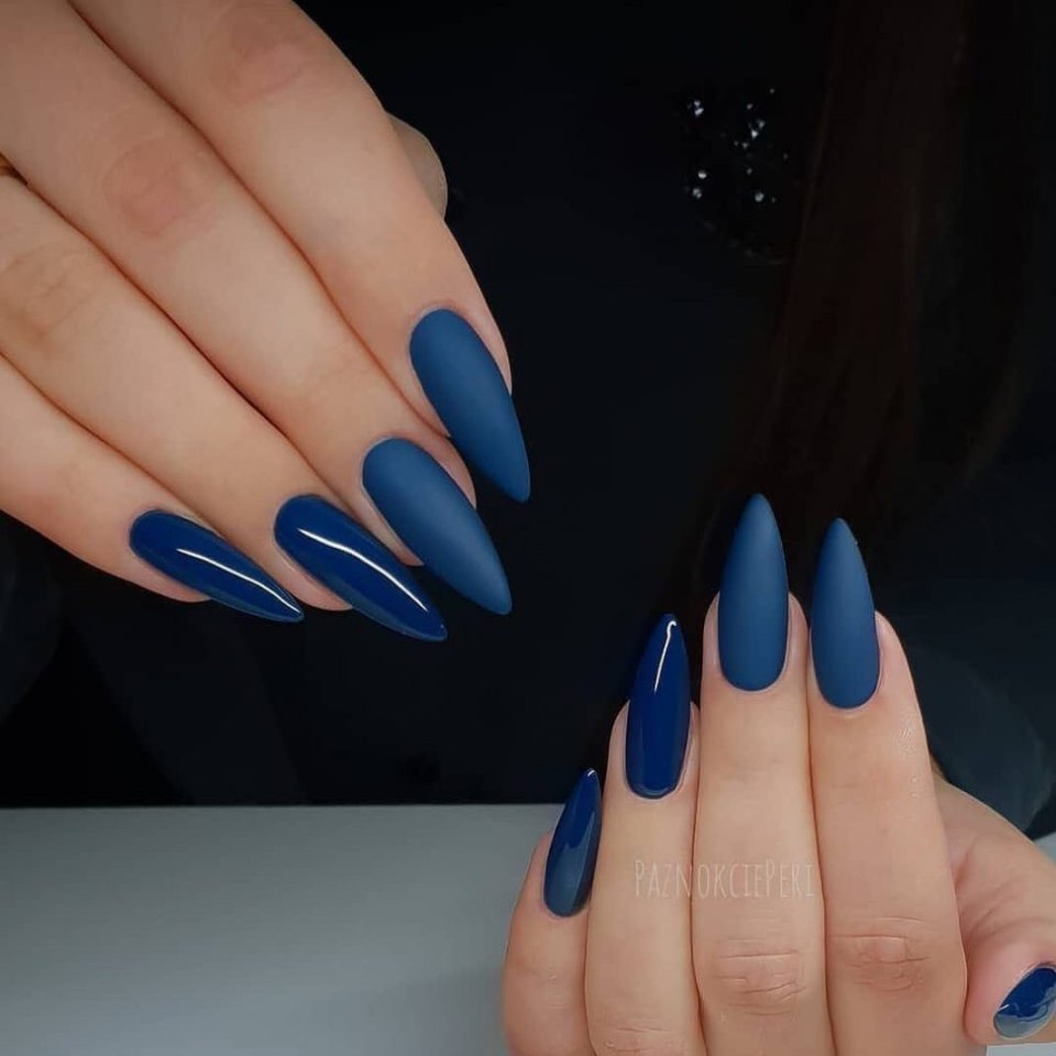 Темно синие ногти миндаль
