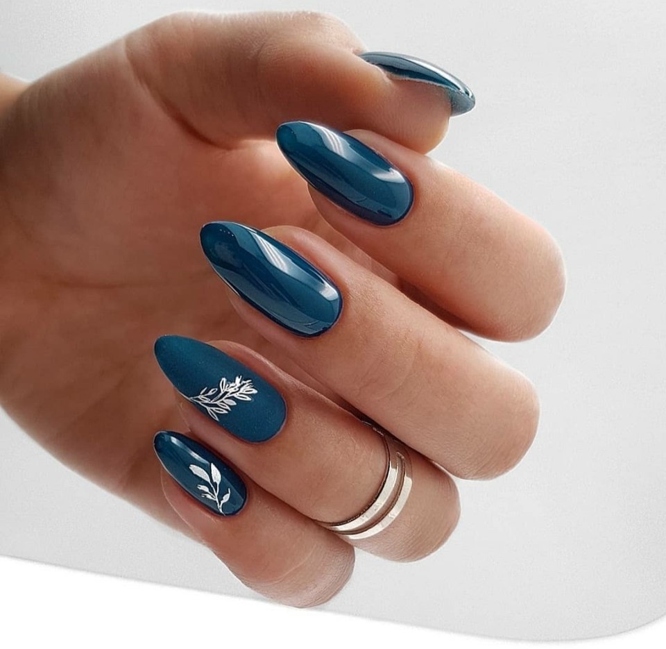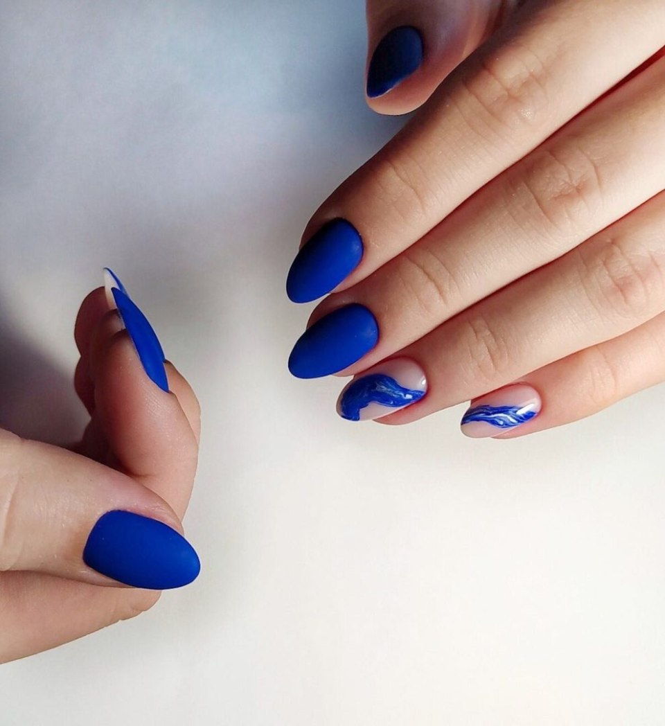 Синий маникюр 2021 миндаль