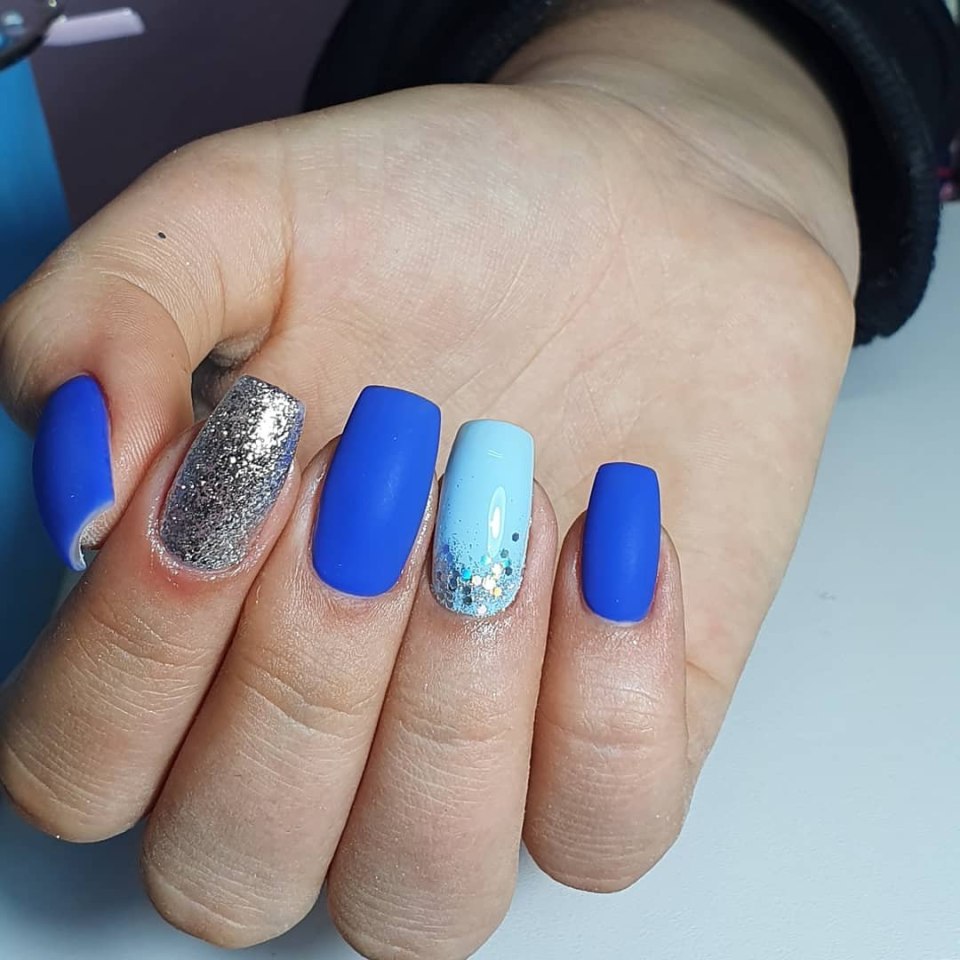 Синий маникюр с блестками