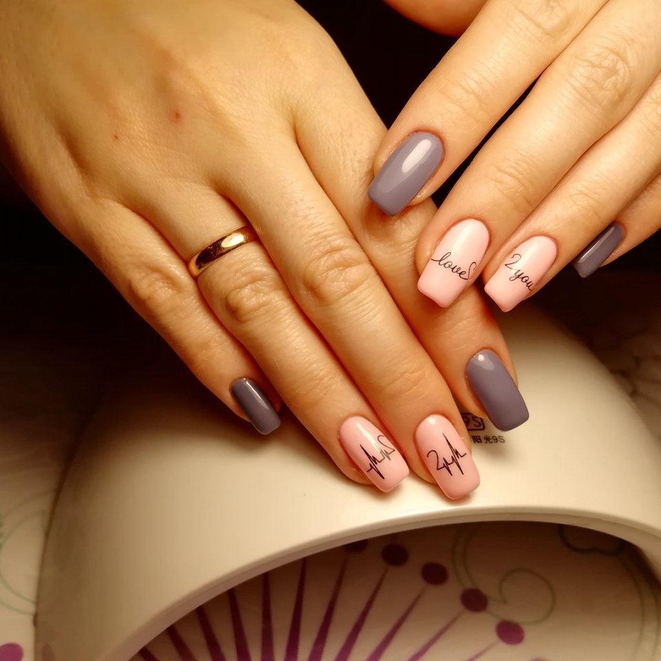 Серо-розовый маникюр